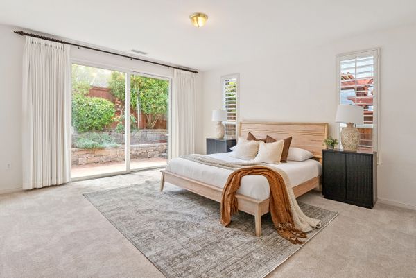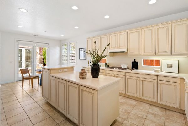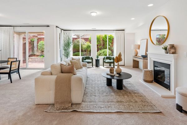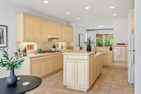 Inside, you’ll find a bright, airy layout with a generous kitchen, plenty of cabinetry, a large island, and a cozy breakfast nook. The formal dining area opens to a comfortable living room with a gas fireplace and an entire wall of windows that fill the space with natural light. New plush carpet adds a fresh touch throughout. The primary suite offers a walk-in closet, large sliding doors with updated panes, a soaking tub, separate shower with grab bars, and a private toilet room. The guest bedroom features beveled sliding glass closet doors and is conveniently located near the full guest bath. A third room, without a closet, makes a great office or hobby space.