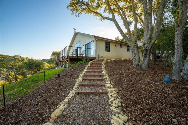 Step into modern luxury with this 2023 custom-built single-level home on over 5 acres in northwest Atascadero. This 2-bed, 2-bath home with a bonus room offers panoramic views, an open floor plan, high ceilings, large windows, and custom finishes throughout.