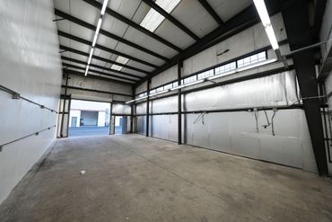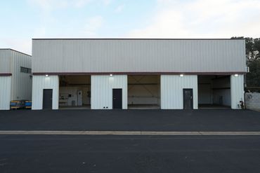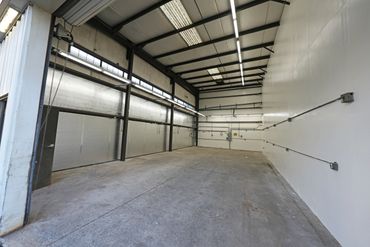 Single-story unit including roll-up door access, approx. 23’ clearance height, 3-phase power, and a restroom.