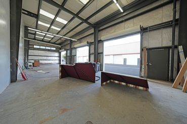 Single-story insulated unit including roll-up door access, approx. 23’ clearance height, 3-phase power, two offices, and a restroom.