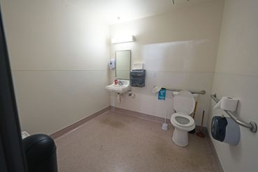 Single-story unit including roll-up door access, approx. 23’ clearance height and a restroom.